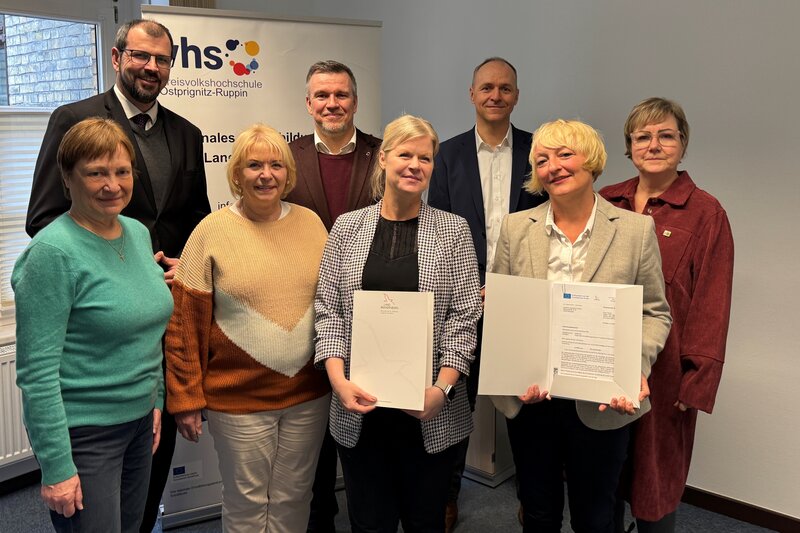 Bildungsminister Steffen Freiberg hat Ende vergangener Woche in Anwesenheit von Landtagspräsidentin Prof. Dr. Ulrike Liedtke sowie der OPR-Kreistagsvorsitzenden Sigrid Nau einen Förderbescheid für das Regionale Grundbildungszentrum im Landkreis Ostprignitz-Ruppin an Landrat Ralf Reinhardt übergeben.